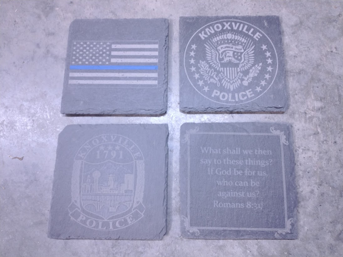 Whether it’s laser engraved plaques for celebrations or memorials, laser engraved slate coasters, charcuterie boards, or other gift ideas, please contact us for your needs.